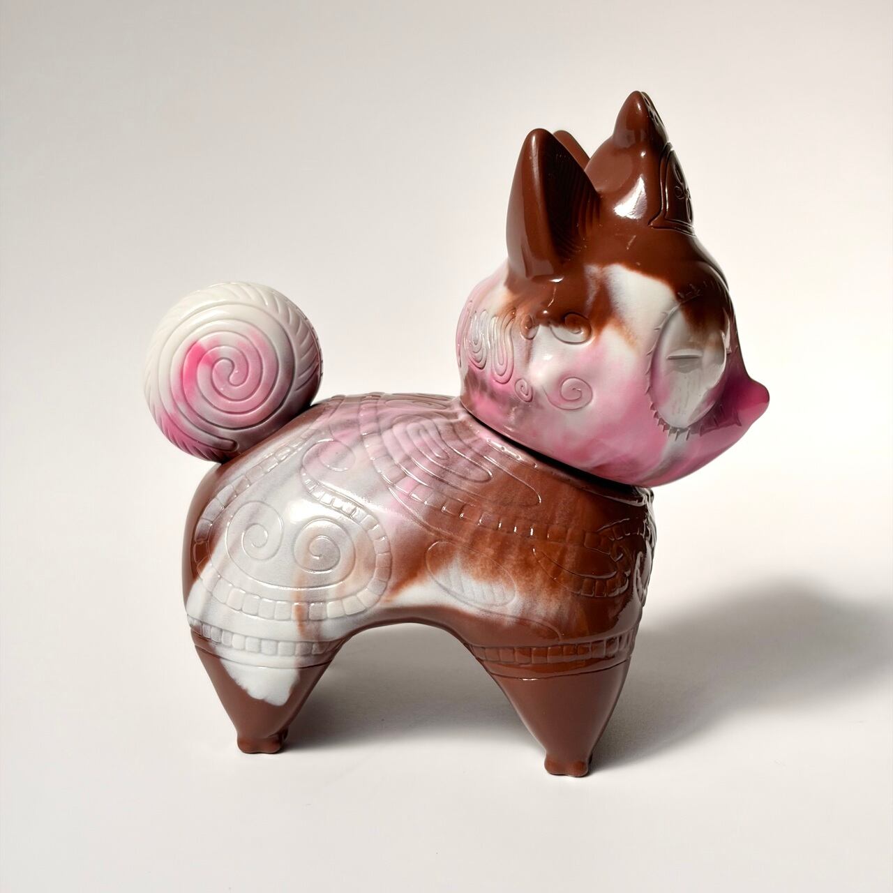 「ドッグゥ」のソフビ、3色チョコレート風にマーブル成形してみました。