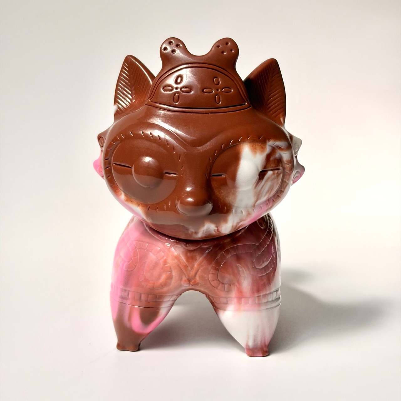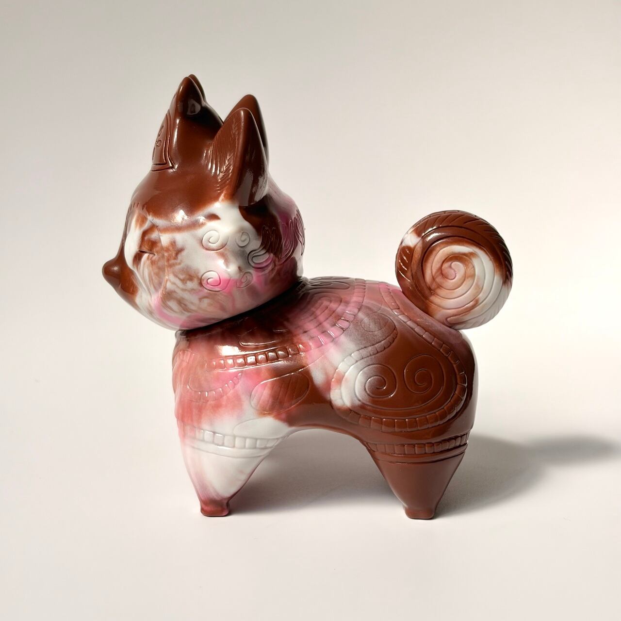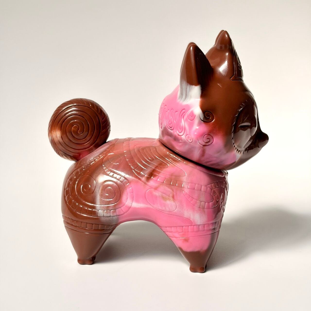「ドッグゥ」のソフビ、3色チョコレート風にマーブル成形してみました。