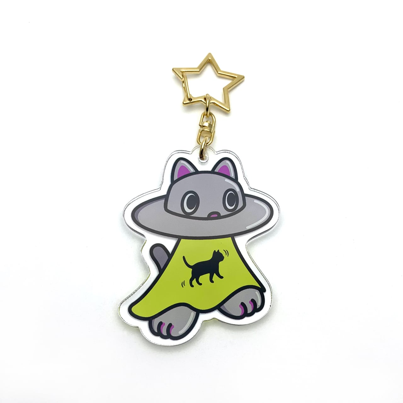 オリジナルソフビキャラクター「アブニャン」のアクキーを作ってしまいました。アブニャンとは、UFOにさらわれつつもそのUFOを乗っ取って地球に帰還した猫です。星形の金具を見つけちゃったもんだから、これは作るしかない!と思いましたのです。